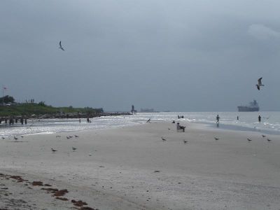 Das ist Galveston. So eine Art Zingst auf texanisch. Eigentlich sehr schön, sieht aber so aus, als ob es hier auch schon mal bessere Zeiten gab. Der Texaner ist wohl ein Bademuffel. Wahrscheinlich liegt das daran, dass man mit dem Auto nicht direkt bis ins Wasser fahren kann. Man kann zwar …, kostet aber $8, obwohl das Meer hier definitiv das Gewässer ist, welches frei von Alligatoren ist, was wohl wiederum an den vielen Haien liegt. Na toll, dachte ich mir, dann eben allein, nichts wie rein! Aber die Größe der Krabben die vorn am Wasser auf mich zu kamen hat mich doch erst einmal inne halten lassen. Auch die Taschenkrebse hatten eine Größe die den Vornamen nicht wirklich rechtfertigte. Aber der Strandspaziergang war auch sehr schön. Ich konnte Muscheln sammeln, nachdem ich mich davon überzeugt hatte, dass diese nicht weg liefen, habe fliegende oder springende Fische gesehen, in den Dünen meinen ersten Skorpion in natura und jede Menge alter Autoreifen, deren Marken ich leider nicht mehr erkennen konnte.