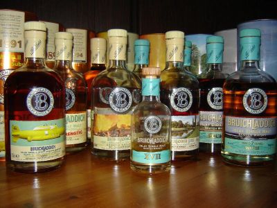 Der Bruichladdich ist grundsätzlich mein Liebling unter den Lieblingen (Islay). Die Destille liegt eigentlich auf der vorgelagerten Islay-Halbinsel Rhinns und ist mit Talisker (Isle of Skye) die Westlichste in Schottland. Sie wurde 1881 erbaut und stellte meines Wissens zwei mal komplett den Betrieb ein, von 1929-36 (in dieser Zeit starb der Gründer William Harvey) und von 1994-2001. Ab 1968 gehörte Bruichladdich zur Invergordon-Gruppe, die 1993 komplett von Whyte&Mackay (Amerikaner, ab 1995 dann Jim Beam Brands) übernommen wurde. Nachdem Bruichladdich schon ab den 1980er Jahren Probleme hatte (teilweise nur ein Tag Produktion je Woche) wurde die Destille Ende 1994 zu Gunsten von "Isle of Jura" dicht (war'n die Ammis selbst wohl nich so janz) gemacht. Mark Reynier erwarb Bruichladdich Ende 2000 (nachdem er ein paar Jahre zuvor bei Ardbeg überboten wurde) und startete im Frühjahr 2001 gemeinsam mit Brennmeister Jim McEvan die unabhängige Produktion. Danke! 2001, 2003 & 2006 wurde Bruichladdich "Destille of the Year"!